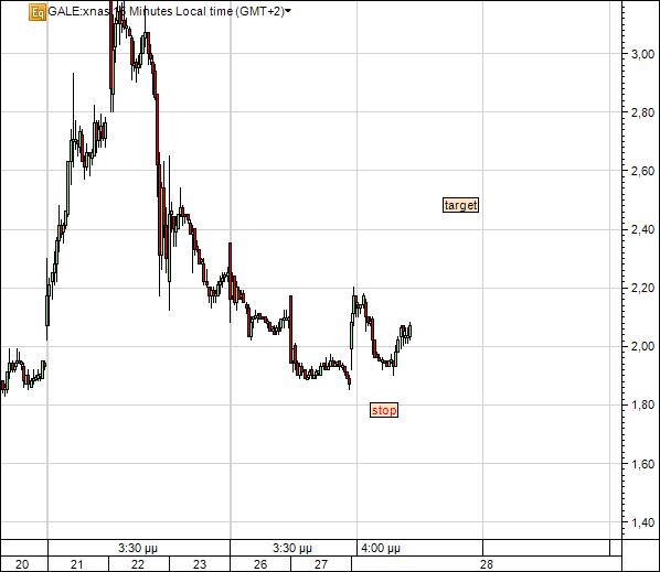 Since the markets are correcting or moving sideways, I tend to pay more attention to selected stocks that I think will have a better risk/return ratio. GALE used to be a favorite of mine at 1,50 were I entered.At 2,45 I exited and saw it rising up to 3$. Now I believe it might have finished its correction and ready to test the highs. Be very carefull if you decide to trade this stock....very volatile.